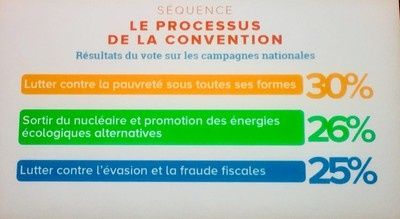 A un rythme soutenu, de samedi après-midi à dimanche matin, nous avons travaillé sur la mise en œuvre des trois thèmes de campagne décidés par les 55000 participants au vote décisionnel. A savoir la lutte contre la pauvreté, la sortie du nucléaire et le développement des énergies renouvelables et enfin le combat contre l'optimisation et l'évasion fiscale. Des centaines d'idées ont germé en termes d'actions concrètes et d'objectifs à atteindre. Que du bon !